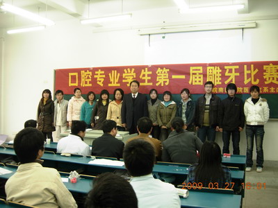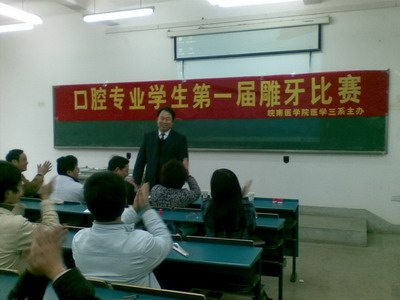 在李朝品副院长、教务处的关心支持下,医学三系经过精心组织,于3月27日下午2点在东教学楼404教室,开展了口腔专业学生第一届雕牙比赛。比赛由柴琳副主任主持,唐传莉副主任致开幕词,李朝品副院长现场致辞并对大家进行鼓励。
