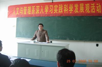 程度副书记在会上作了讲话,他对人文与管理系能及时传达和落实学校党委关于在全校开展深入学习实践科学发展观的部署表示满意,并进一步提出了希望和要求,他强调了我校党委组织全校党员开展深入学习实践科学发展观的主题,要求我系全体党员认识到开展此项学习实践活动的重要意义,端正态度,并将这次的学习实践活动和本系的长远发展工作相结合,争取在学习中找出不足,在学习中发展自我、完善自我,提高我系在学校各项工作中的影响力。