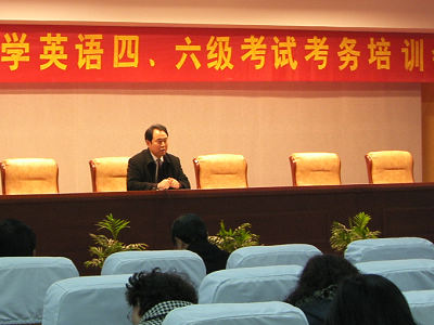 随后,教务科副科长王俊同志就本次考试的流程和注意事项向参会者做出了详细的说明。会上还向每位监考老师发放了《关于做好2008年12月全国大学英语四六级考试考务工作安排的通知》。
