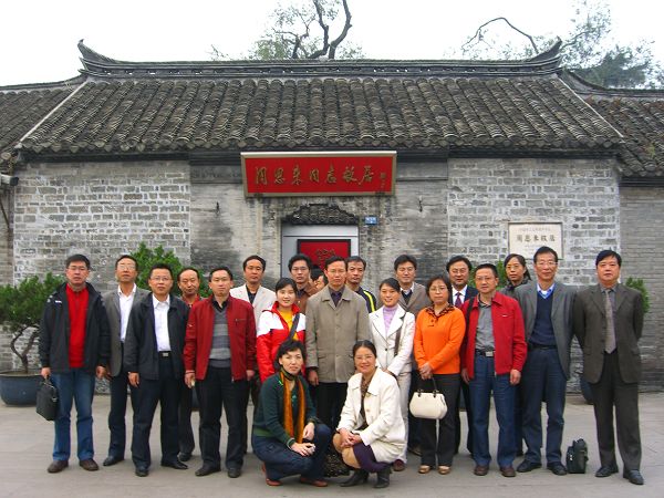 校党委副书记郑勇超与参观人员在周恩来同志故居前合影
