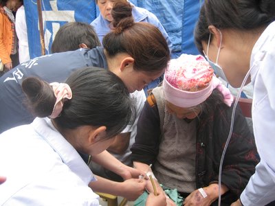 我校附属弋矶山医院抗震救灾医疗队在院长芮景同志带领下,15日抵达灾区,目前正在青川,并不断徒步向乡村纵深挺进,争分夺秒地开展救治工作。