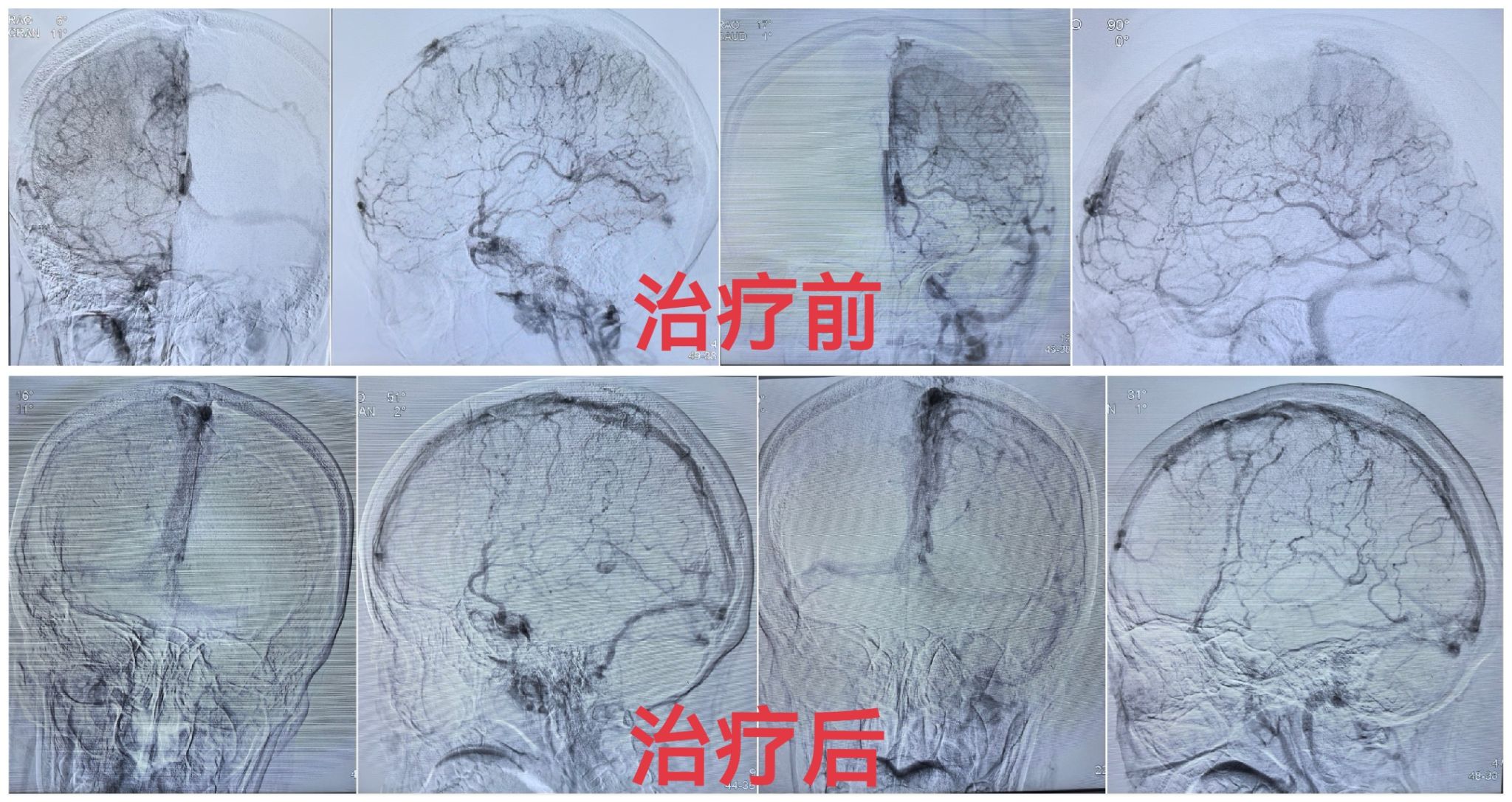 患者,女,28岁,进藏1周并伴发肺水肿,头部持续剧痛,全身无力,合并恶心呕吐等症状,在外院按高原反应治疗无效后急诊转至山南市人民医院,给予完善头颅CT检查。援藏医疗专家张子焕与科室史睿主任阅片后考虑CVST伴出血可能,需要急行全脑血管造影明确诊断。后立即启动脑卒中应急处置预案,联动介入中心、检验科及放射科等科室开放绿色通道。在多学科配合下,患者于1小时内完成院内急救及术前相关检查并安全送至介入手术室,全脑血管造影进一步证实该患者为CVST。随后结合血栓位置、范围,按照治疗指南,给予规范抗凝治疗,翌日患者症状即减轻,提示治疗有效,而后逐渐好转,直至完全缓解。后复查全脑造影术,提示颅内静脉窦再通、血栓消失,治疗效果良好。