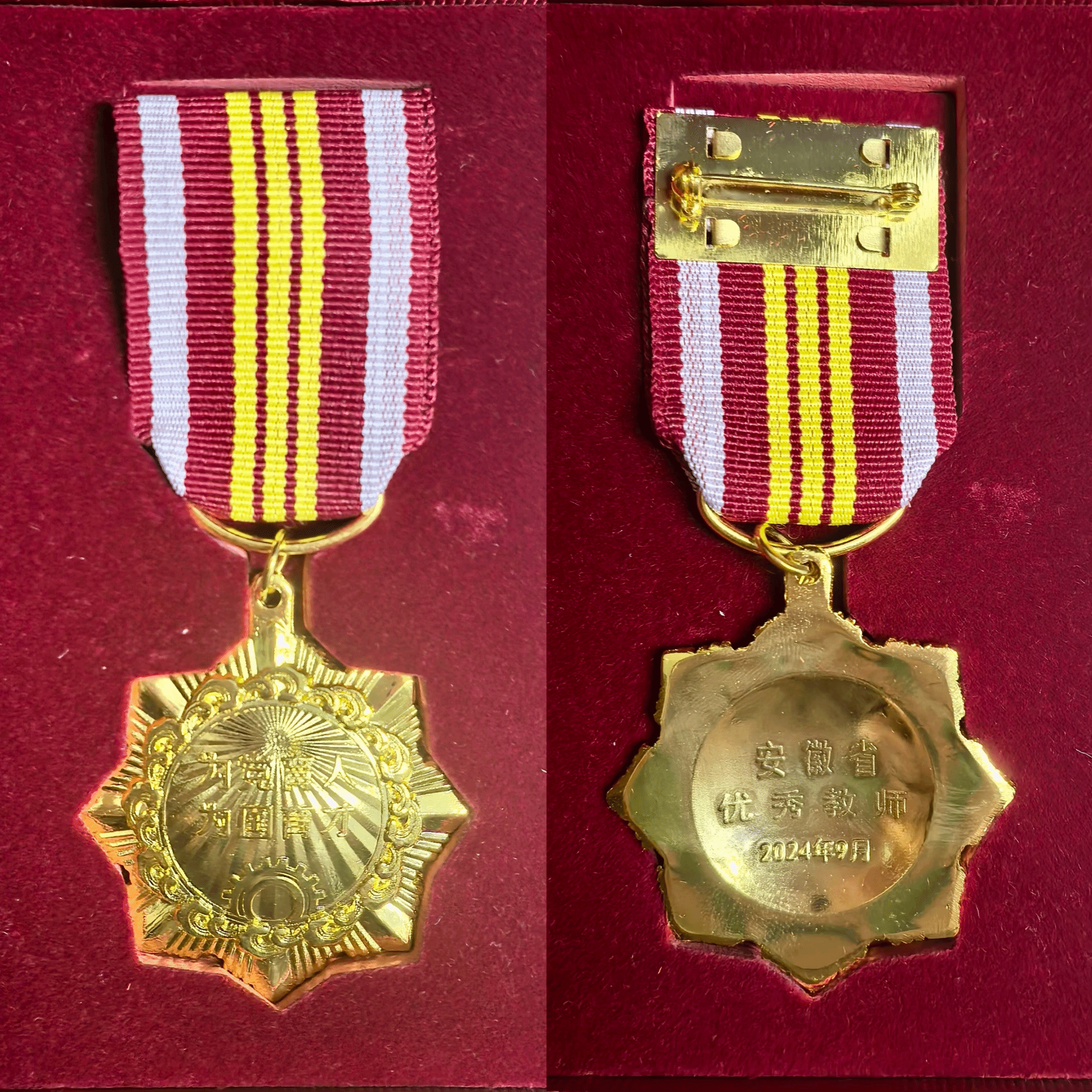优秀教师获奖证书和奖章