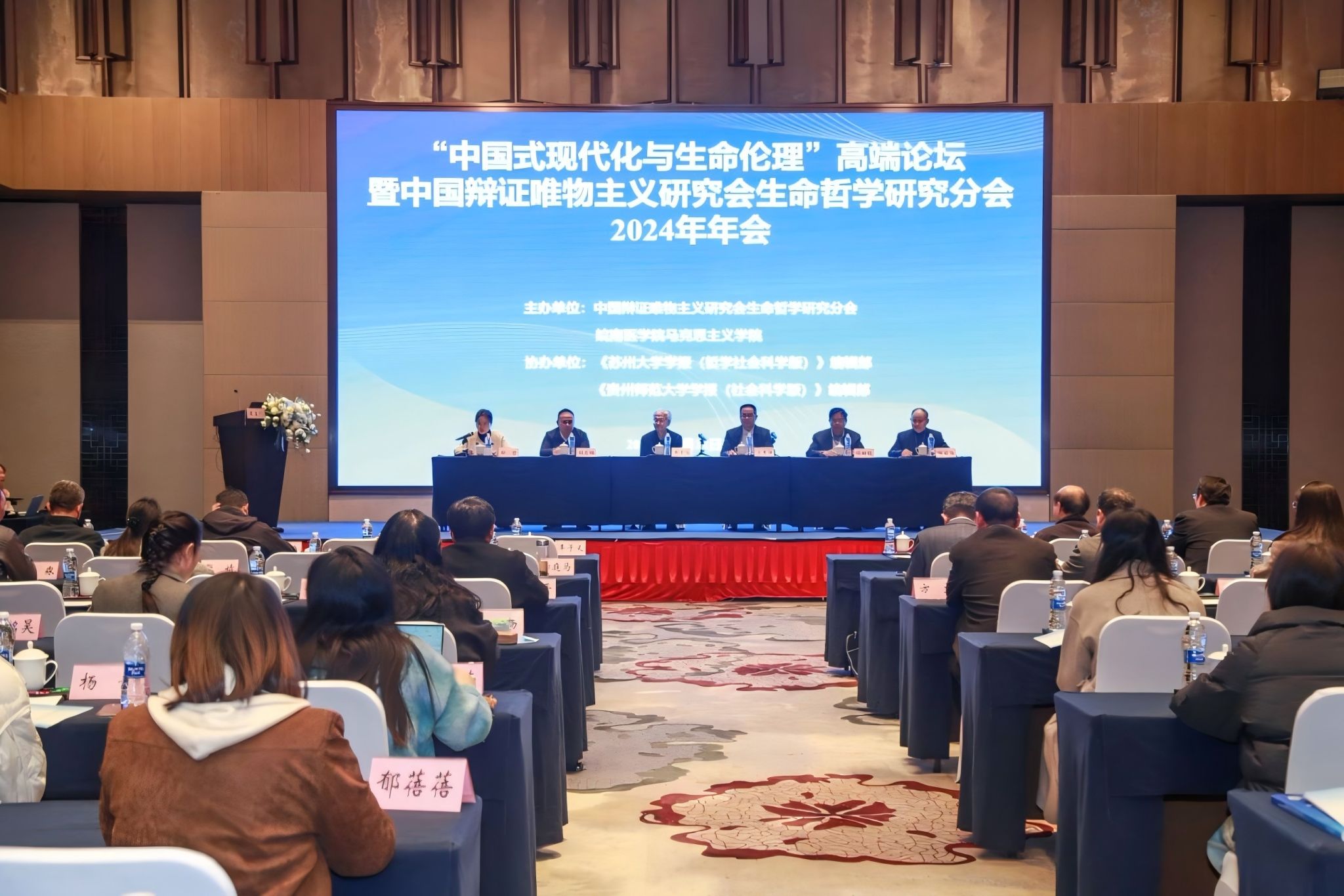 11月23日,由中国辩证唯物主义研究会生命哲学研究分会和马克思主义学院联合主办,《苏州大学学报(哲学社会科学版)》编辑部、《贵州师范大学学报(哲学社会科学版)》协办的“中国式现代化与生命伦理”高端论坛暨中国辩证唯物主义研究会生命哲学研究分会2024年年会在芜湖顺利召开。