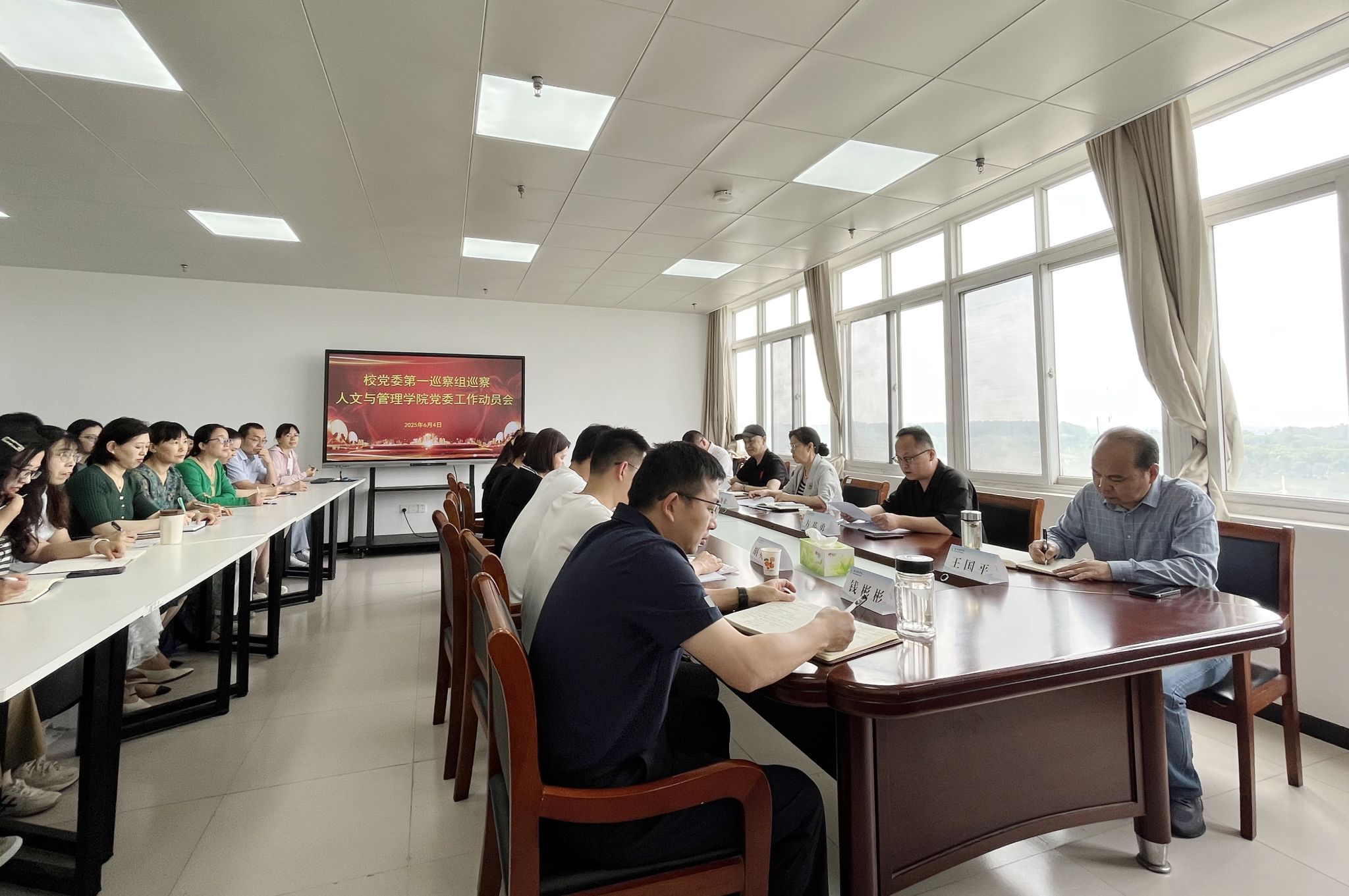 两个学院领导班子成员及全体教职工、第五轮两个巡察组成员分别参加会议。(陶佳/文  徐德磊、徐维/