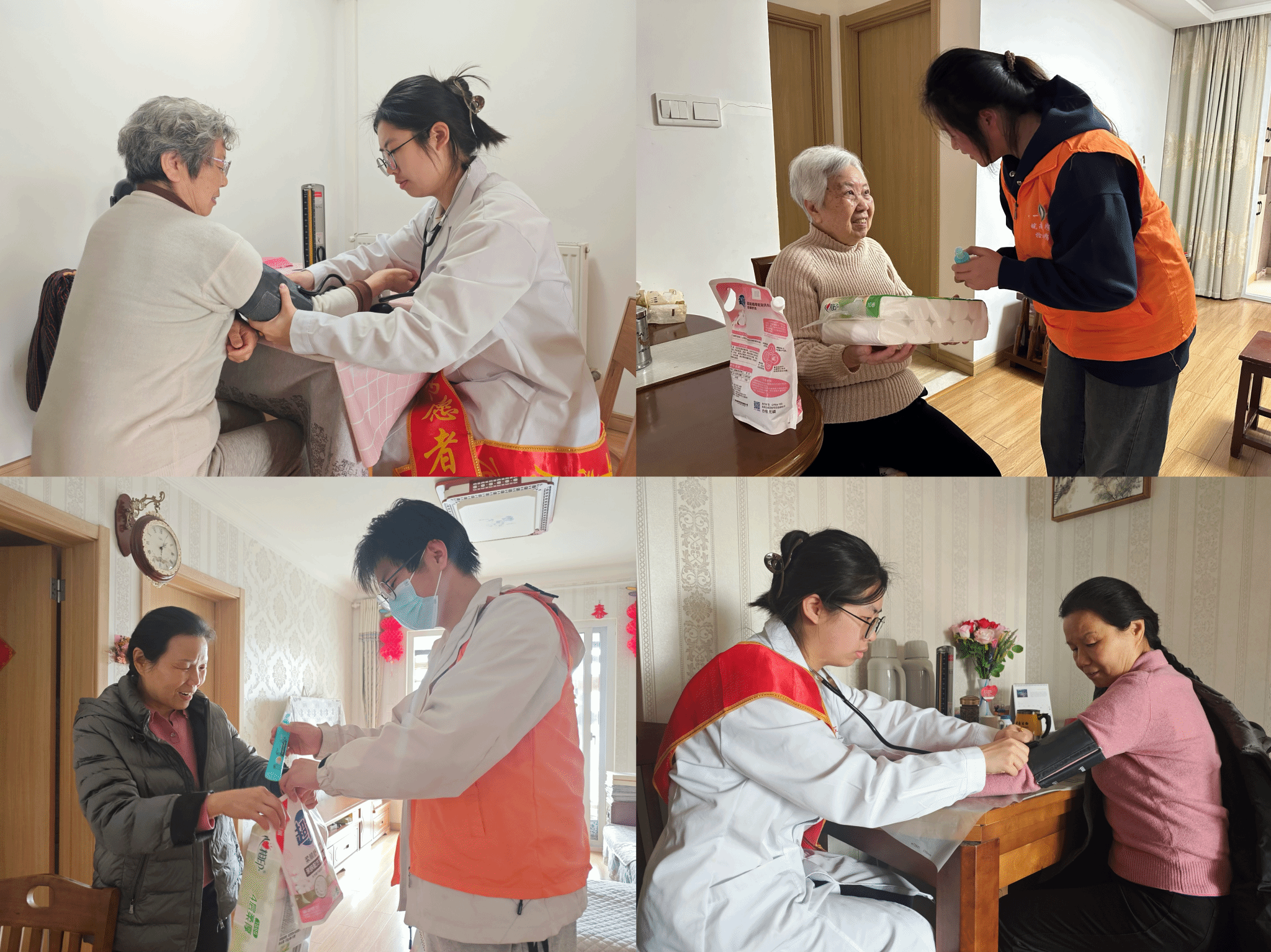 温情入户暖人心:精准帮扶到家,赓续红色血脉。志愿服务队深入社区特殊群体家庭,开展“四个一”关怀行动:一次健康体检、一个应急药箱、一堂防诈微课、一张便民联系卡。在居民家中,志愿者不仅为老人调试助听器、讲解春季养生知识,更通过“口述历史”形式倾听老人讲红色故事。通过代际对话传承革命精神,厚植爱国情怀,强化历史使命感,激发奋斗意志,在鲜活历史中感知信仰力量。