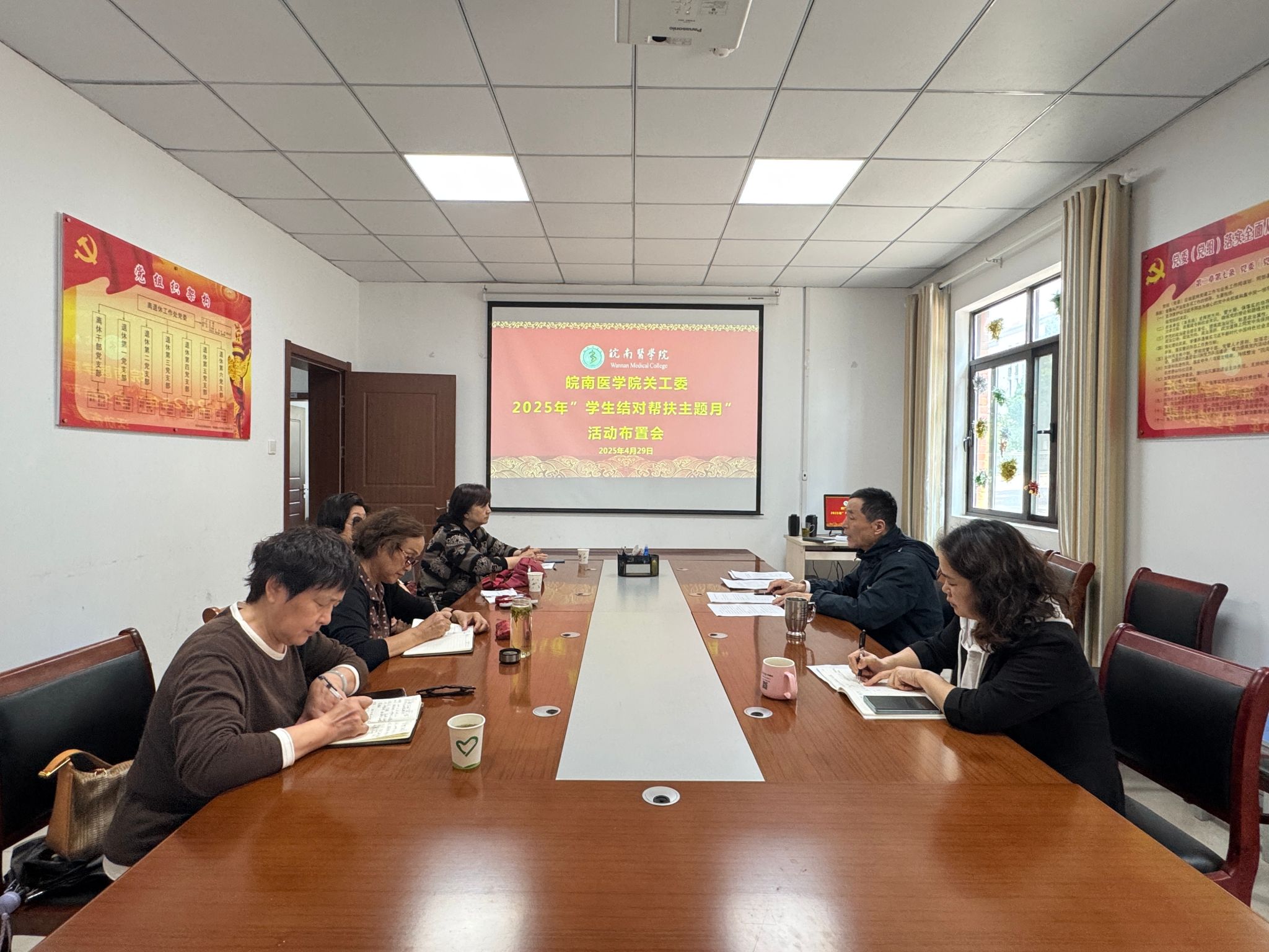 4月29日下午,校关工委召开2025年“学生结对帮扶主题月”活动布置会。校关工委常务副主任周强和校关工委秘书长、离退休工作处处长吴梅等参加会议。会议由周强主持。