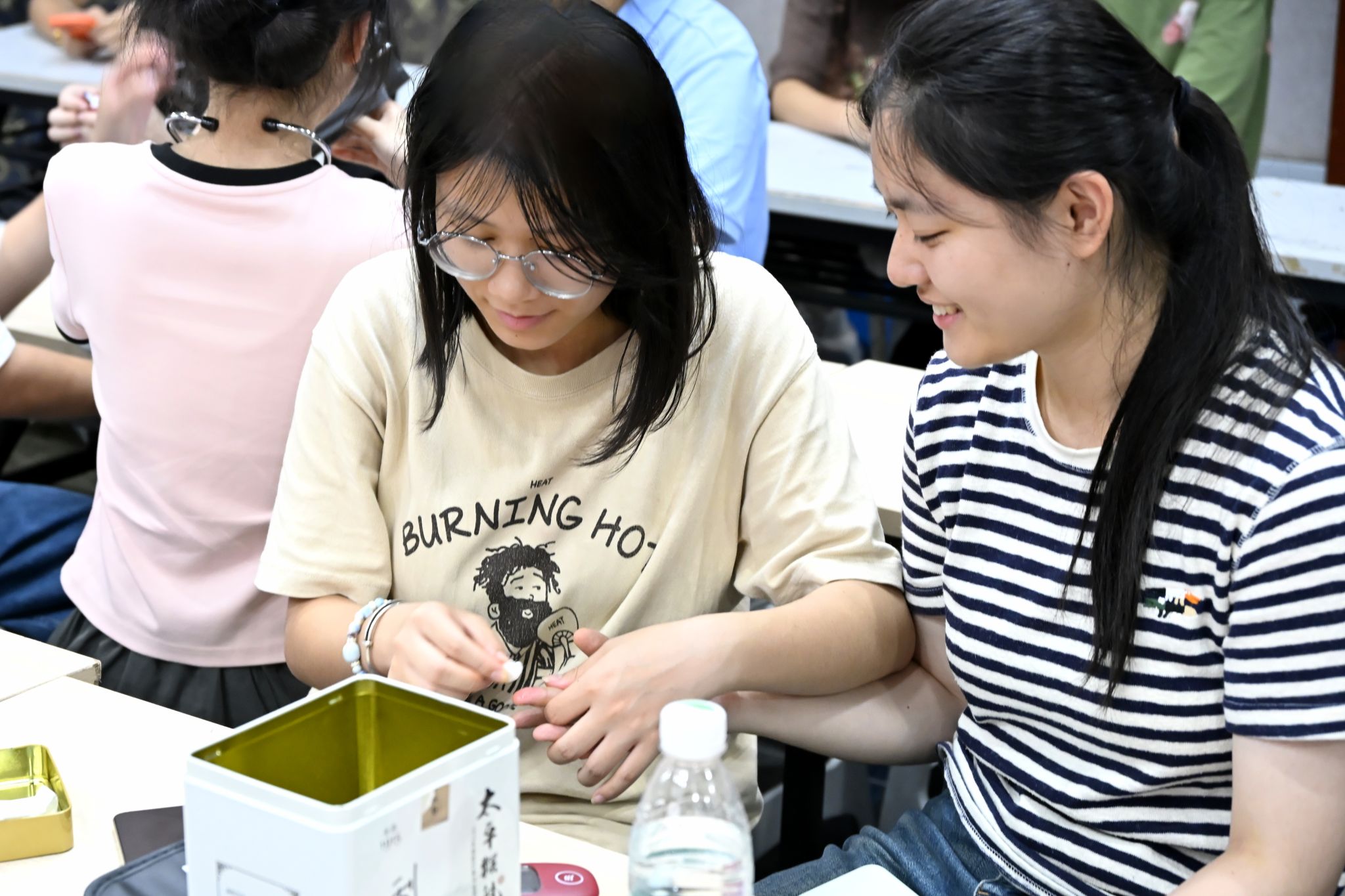 6月29日至7月6日,“青马”社会实践团的42名同学组成书院宣讲小分队,每天头顶烈日、脚踏热浪,前往芜湖弋江南书苑、滨江书苑、麓枫书苑等书院,开展了为期8天17场的“健康中国·科学膳食”主题宣讲活动,服务群众430余名。实践队员创新采用"理论+体验"模式,聚焦"三减三健"的核心理念,以通俗易懂的语言讲解慢性病防治和健康膳食等医学科普知识,同时设置了“食品添加剂我来认”“健康餐盘我来配”等趣味互动环节。活动博得了孩子与家长们的一致青睐,课程结束一位陪同家长更是感慨道:“原来少放一勺盐就是护心良方!”
