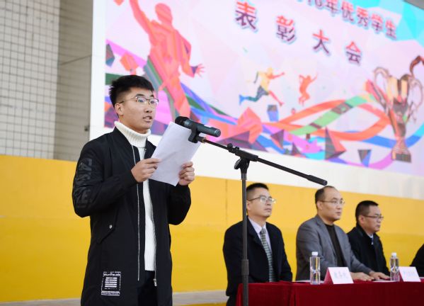 新生代表、口腔医学院王明浩同学发言,他代表2018级全体新生承诺,要以获奖同学为榜样,珍惜时光,勤奋学习,积极进取,奋发有为,争做品学兼优的优秀大学生。