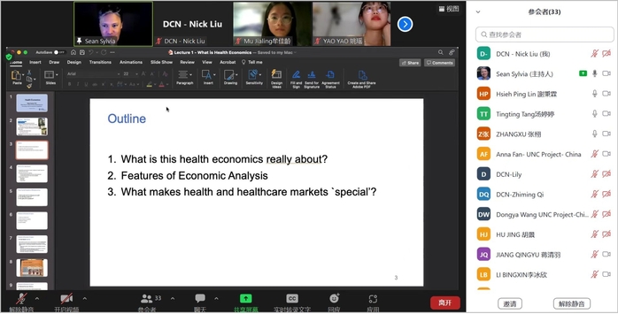 美国北卡罗来纳大学教堂山分校公共卫生学院(UNC Gillings School of Global Public Health)与哈佛公共卫生学院并列排名全球第二, 在全美公立院校中排名第一(2022 U.S. News)。此次开设的公共卫生-全球卫生主题课程内容包括《全球健康项目规划与实践》《全球健康卫生经济》《电子健康》《全球健康项目创新与实践,以及全球健康学习感悟分享》等,由北卡罗来纳大学教堂山分校公共卫生学院的老师授课。通过课程学习,同学们加深了对公共卫生领域国际前沿知识和研究成果的了解,对职业发展前景认识更加清晰,对医生素养的重要性有了更直观的理解。