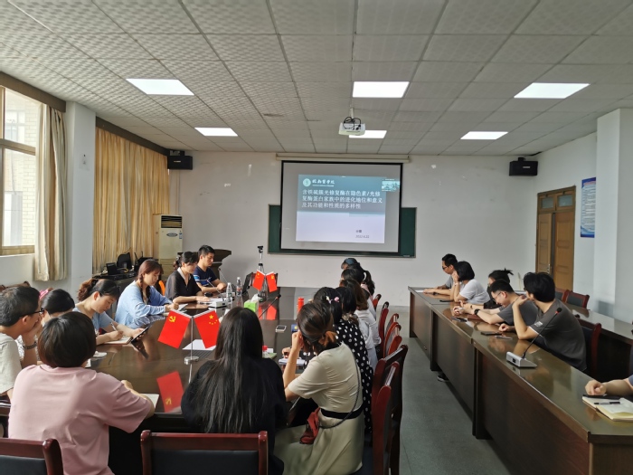 为进一步浓厚学校科研和学术氛围,促进学术交流,6月23日,我校在1号实验楼基础医学院会议室举办第四十期博士论坛。基础医学院徐蕾教授通过线上线下相结合的形式作了题为“含铁硫簇光修复酶在隐色素/光修复酶蛋白家族中的进化地位和意义及其功能和性质的多样性”的学术报告,报告由基础医学院赵金红教授主持。