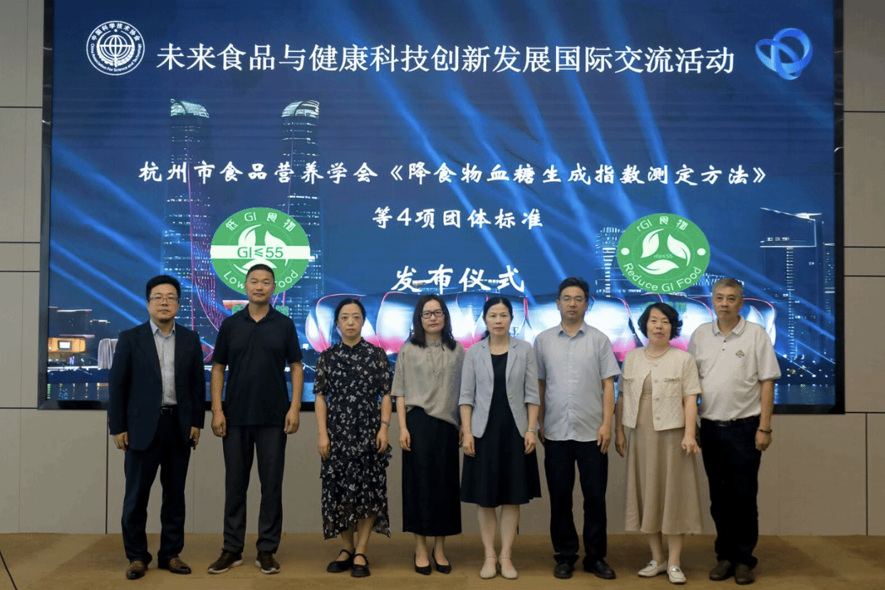 会上,我校公共卫生学院、杭州市科学技术协会、杭州市食品营养学会、杭州市领导以及相关企业代表共同见证了《降食物血糖生成指数(GI)测定方法》《降食物血糖生成指数标示规范》《基于动物试验的食物血糖生成指数标示规范》和《食物血糖生成指数测定——动物试验法》四项团体标准的发布。